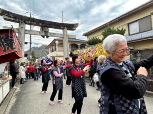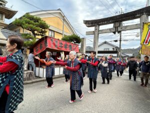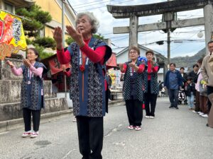 11月24日(月・祝)、備後一宮吉備津神社市立大祭で「備後絣音頭」を御池から参道を踊り本殿北広場にて奉納しました。