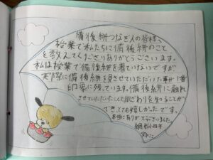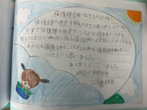 そして各学年の代表からお手紙を受け取り、最後にボランティア団体代表よりあいさつがありました。